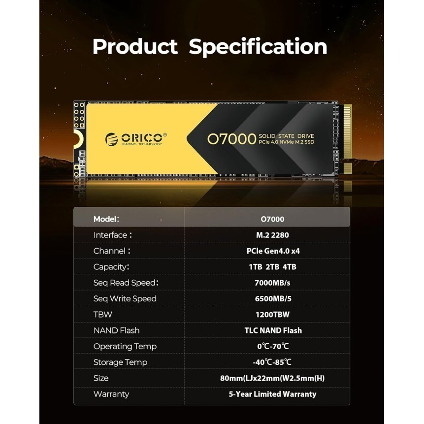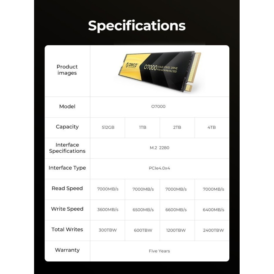 Orico M.2 Nvme Gen4X4 M.2 Pcie 4.0 Ssd 512Gb / 1Tb / 2Tb / 4Tb - O7000