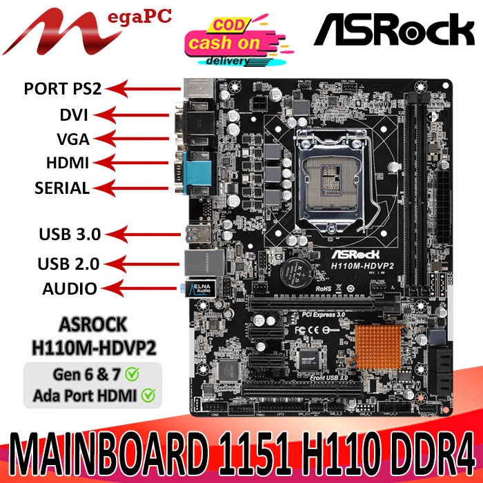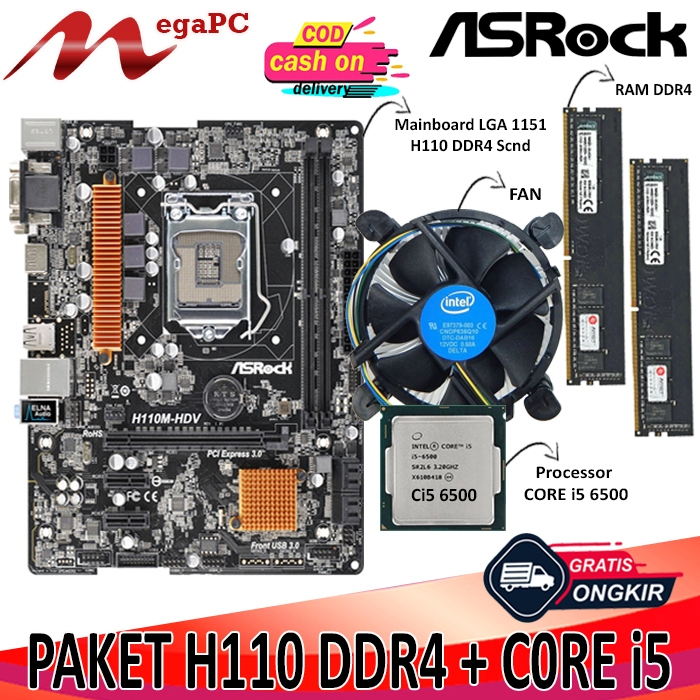 Paket Motherboard Socket Lga 1151 H110 Ddr4 + Core I5 6400 / 6500 + Fan + Ram