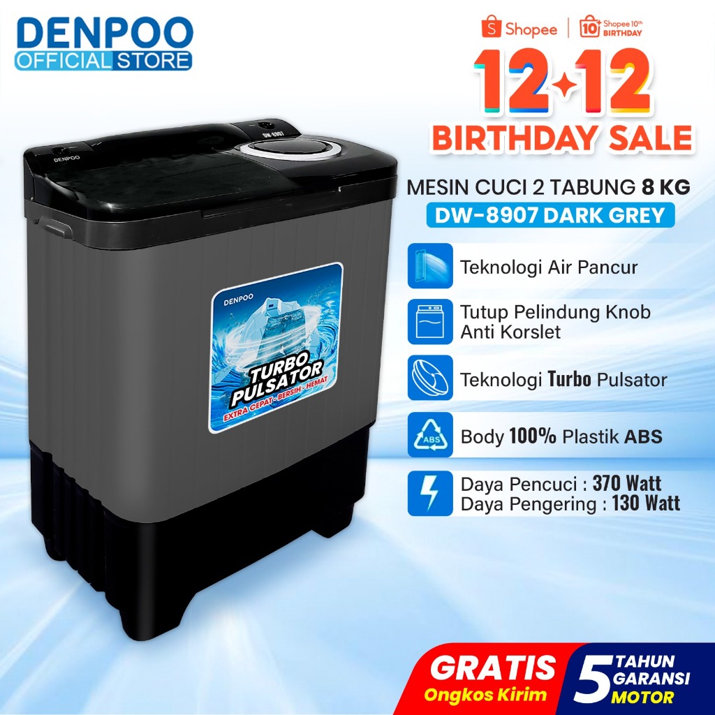 DENPOO MESIN CUCI 2 TABUNG DW 8907B 8KG