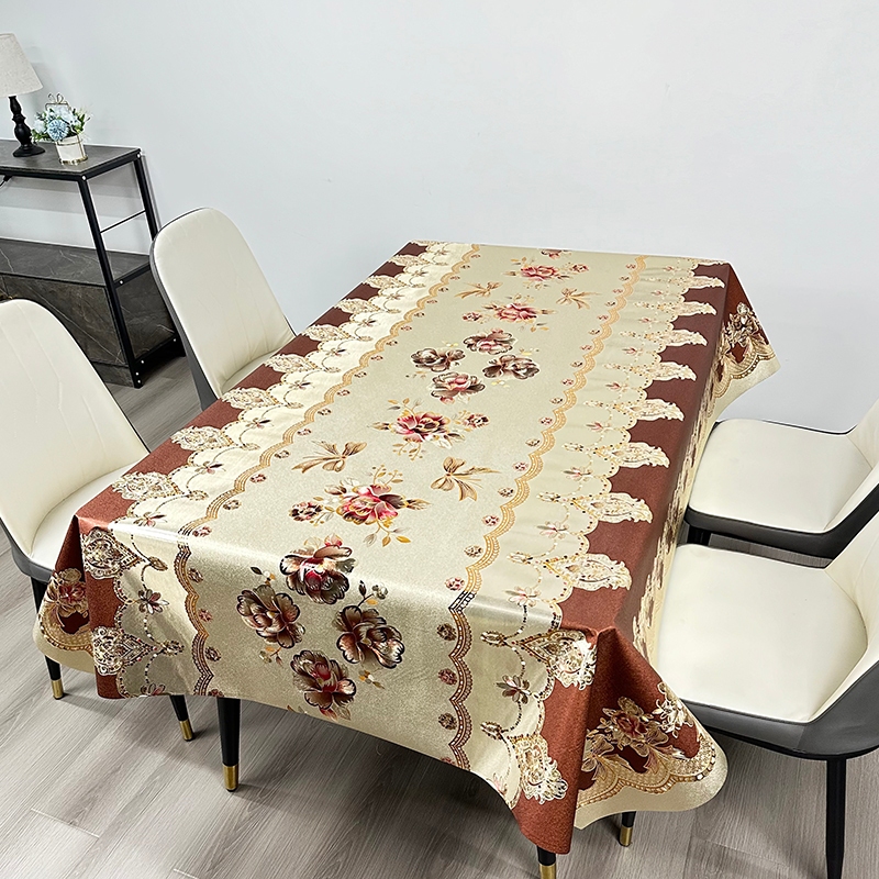 Taplak Meja Sultan Anti Air Bahan PVC Ukuran 137x140cm/137x180cm/137x250cm / Waterproof Alas Piring Meja Tamu / Motif Bunga Persegi Panjang Desain Mewah / Premium Tahan Panas