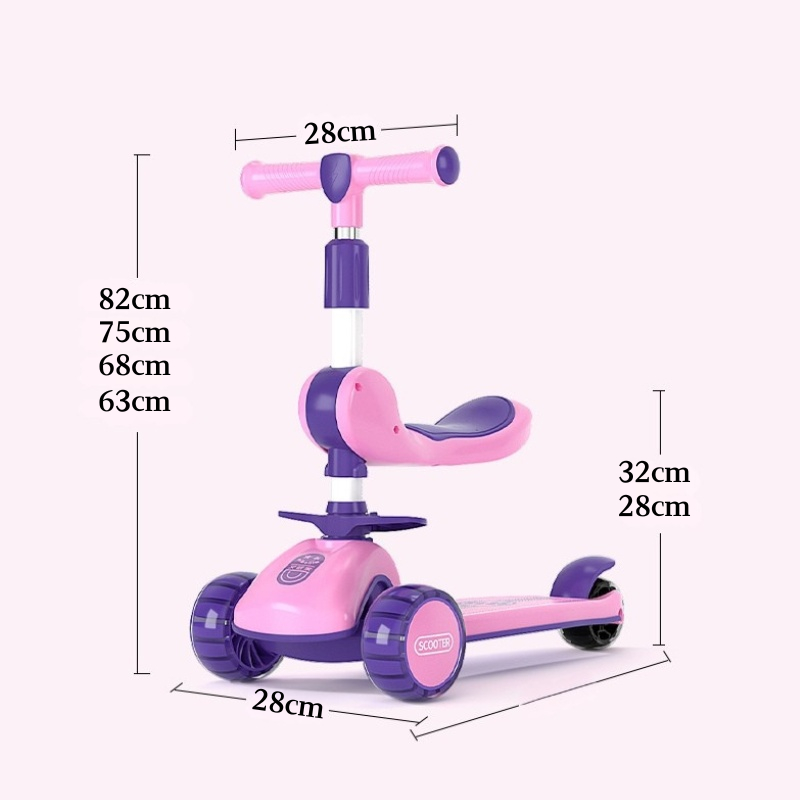 Skuter Anak Roda 3 Perempuan Otoped Lipat Musik dan Lampu