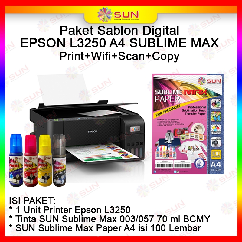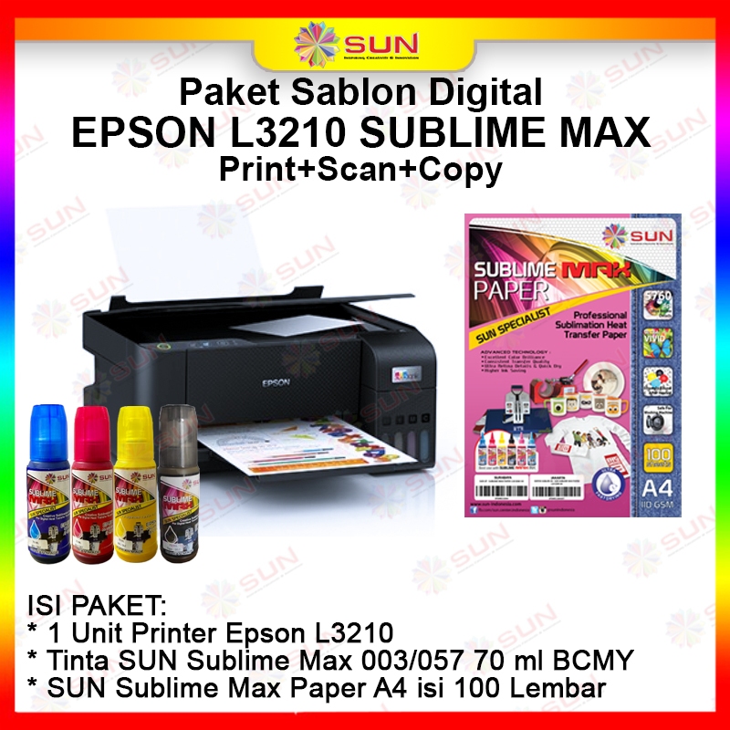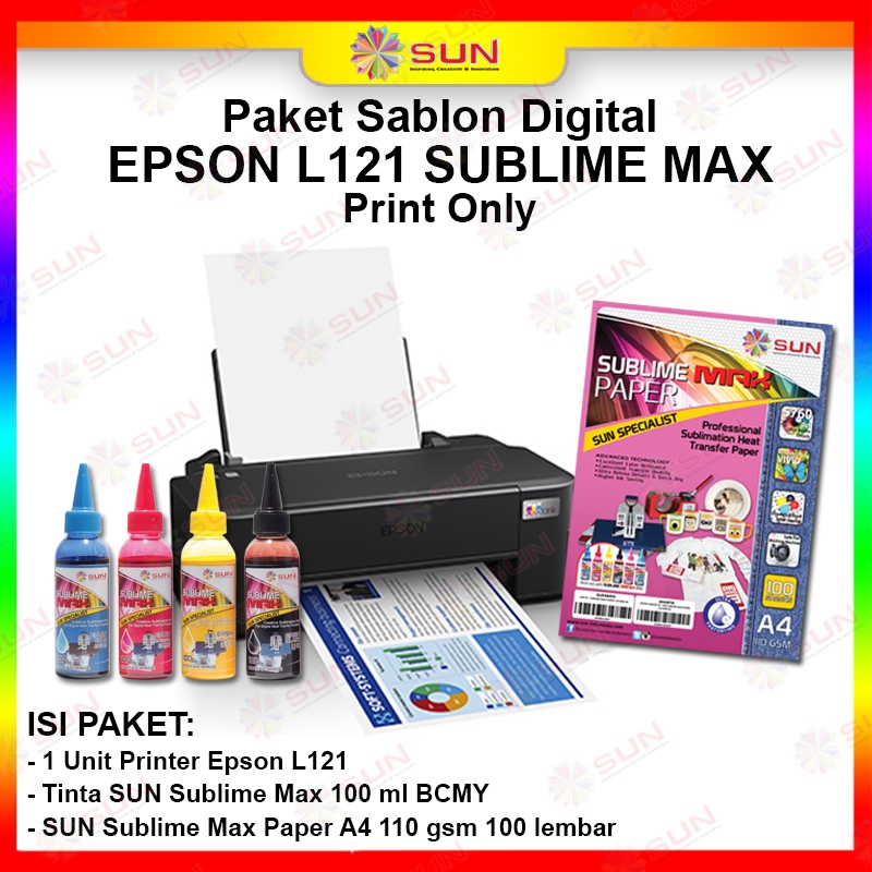 Printer Paket Sablon Digital Tinta Sublime Max SUN Epson L121 / L1210 / L1250 / L1251/ L3210 / L3211 / L3250 / L5290 - P