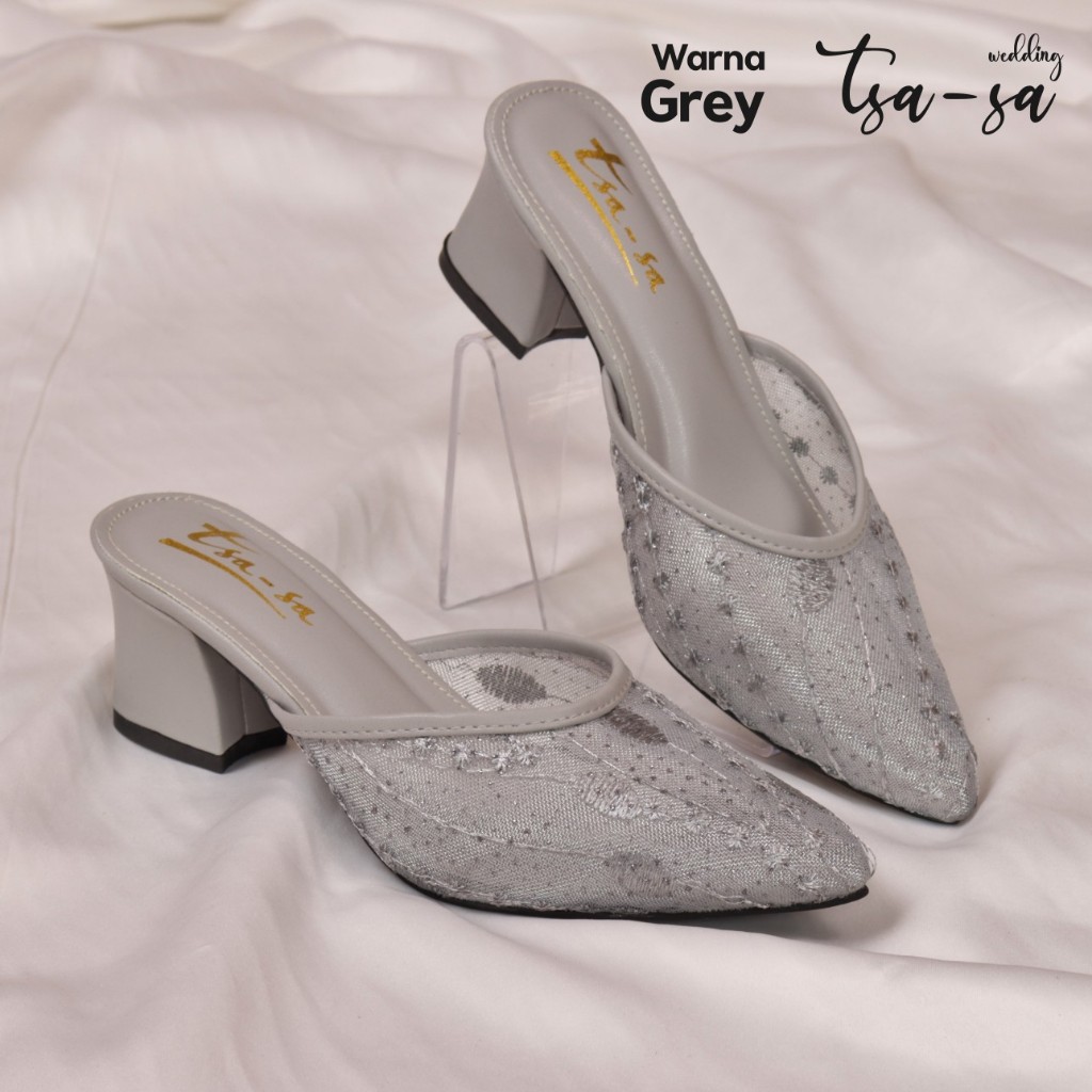 Sepatu Sandal Brukat Pesta Wanita Transparan Hels 5 cm - TS55