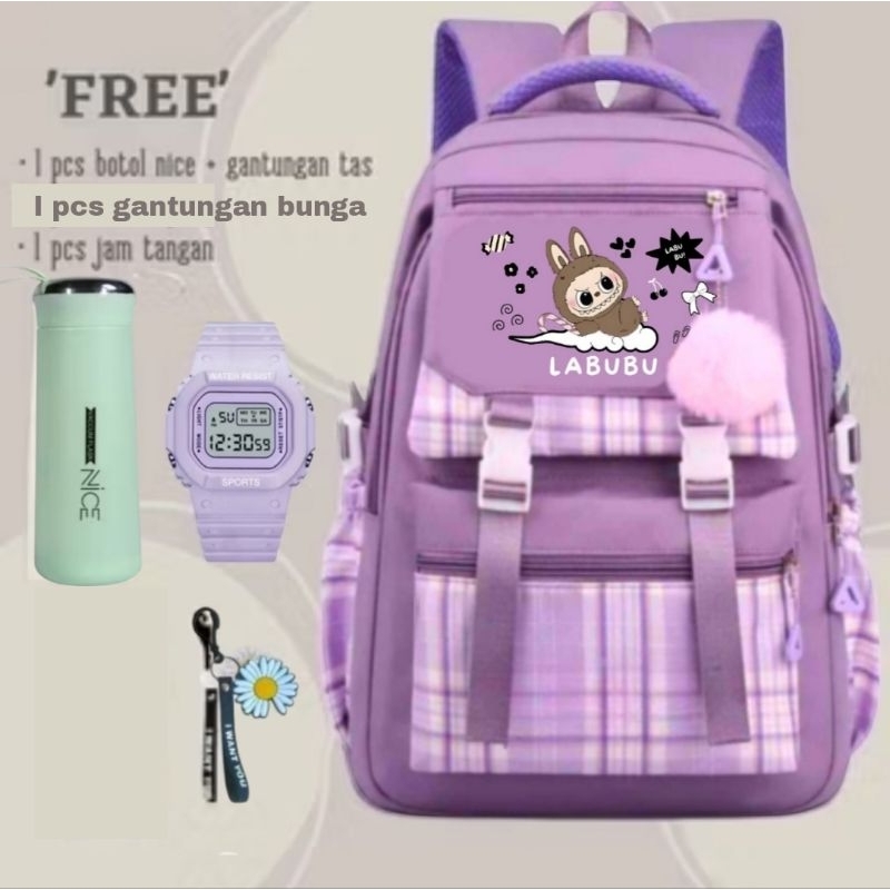 READY Tas Sekolah Labubu MODEL TERBARU BANYAK BONUSNYA Tas Sekolah Anak Perempuan Sd Motif LABUBU VIRALL Tas Boneka Labu