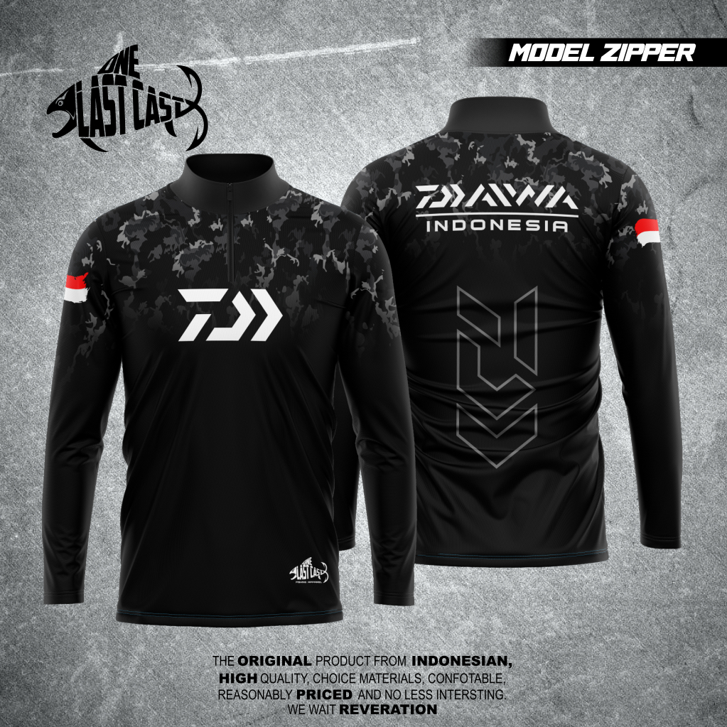 Onelastcast Baju Mancing / Jersey Mancing Model Kerah Berdiri Zipper / Jersey DAIWA BLACK FullPrint