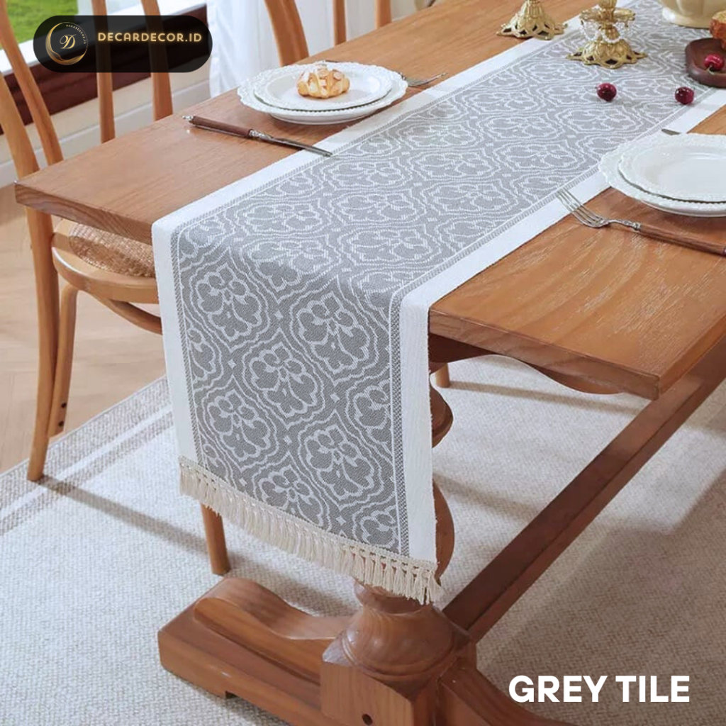 Taplak Meja Panjang Table Runner Meja Makan Buffet Mewah Belgi Silver ukuran 150 210 250 cm