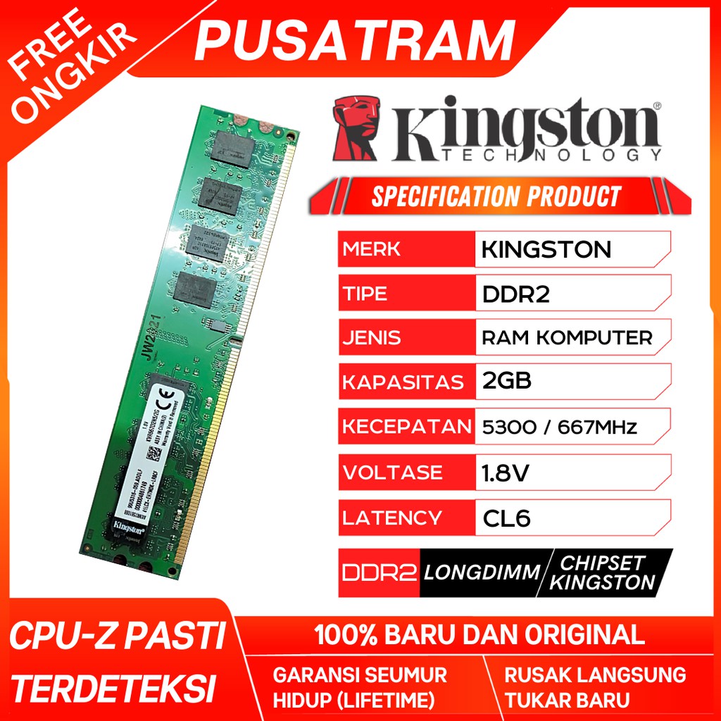 Ram Pc Kingston Ddr2 2Gb 5300 /667Mhz Original Ram Komputer 1.8V 2Gb