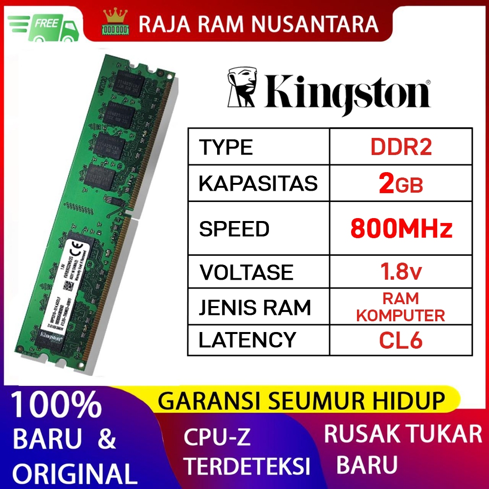Ram Pc Kingston Ddr2 2Gb 800Mhz Pc 6400 1.8V Ori Ram Komputer Ddr2 2Gb Longdimm