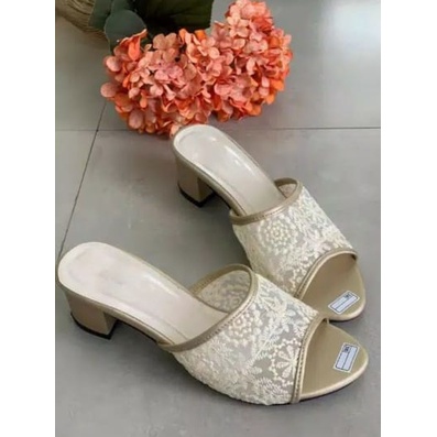 Sandal wanita Chunky Heels/ Sendal Murah/ Sandal Brukat Pesta/ Heels Premium / Sandal Hak 5Cm Anggel