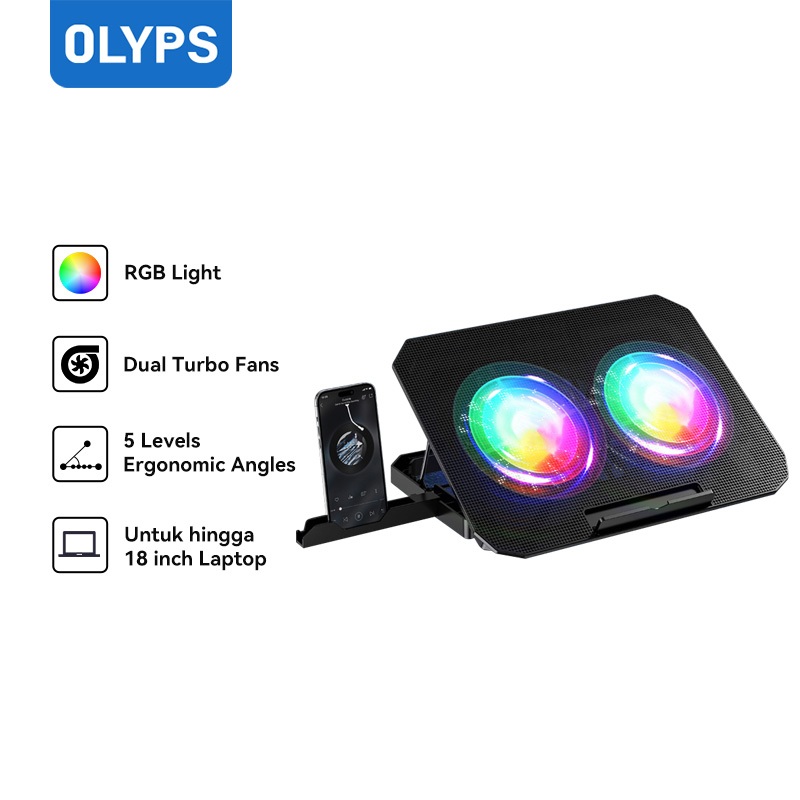 Olyps Cooling Pad Laptop Rgb Gaming Kipas Pendingin Laptop N33 With Phone Stand - 7 Level Adjustable