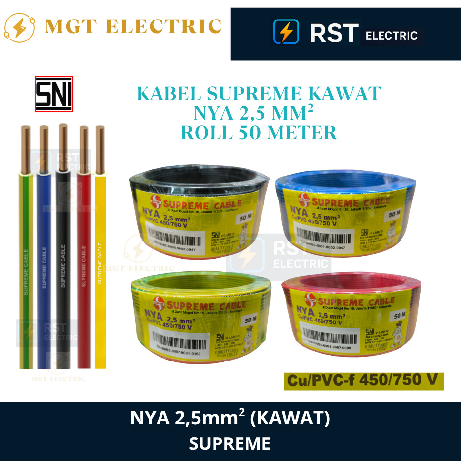 SUPREME NYA 2.5 MM 50M / NYA SUPREME 2,5mm ROL 50 meter / KABEL LISTRIK KAWAT LIDI TUNGGAL 2.5MM ROL 50 METER SUPREME