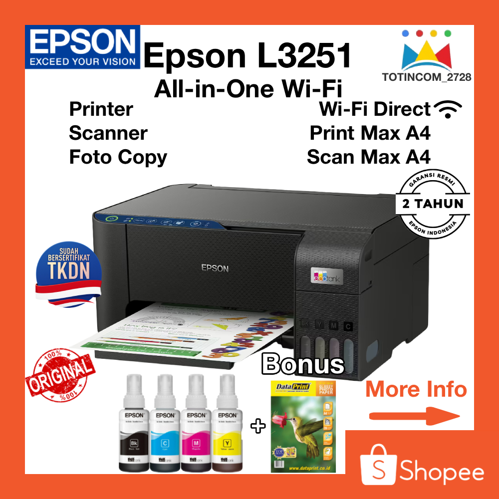Printer Epson F4 Wifi L3251 Scanner A4 Fotokopi A4 Print langsung dari HP Garansi Epson 2 Tahun
