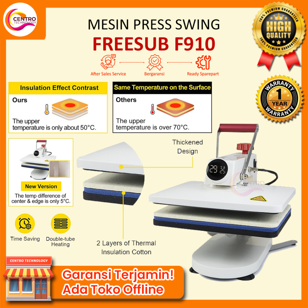 Mesin Press Kaos Swing Digital 29x38 CM | Swing Heat Press Machine Digital Premium (Bisa untuk press DTF, DTG, Sublimasi