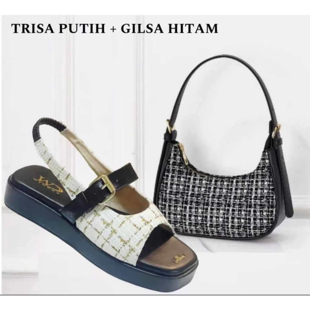 TERBARU PAKET HEMAT Tas Wanita Simple Elegan + Sandal Wanita Sepasang Sandal Setelan Tas Branded Elegan Kekinian