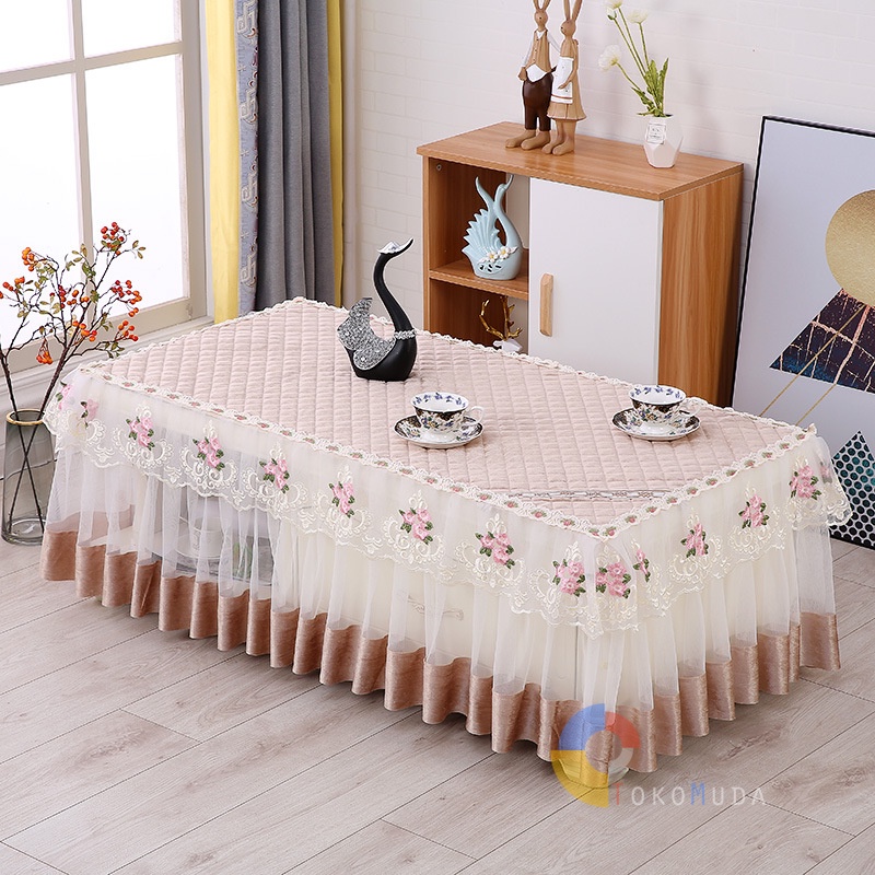 TOKOMUDA Taplak Meja Persegi Panjang Renda MewahTaplak Meja Ruang tamu Renda Lebar 55cm dan 60cm