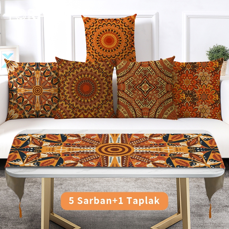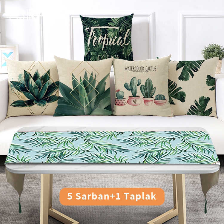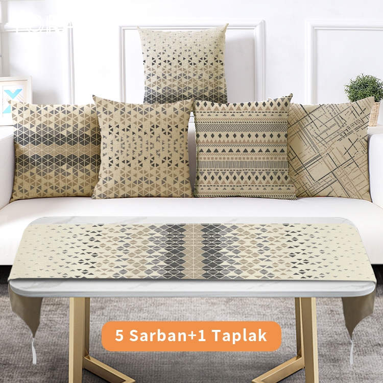 Linen 4040cm Sarung Bantal+ Taplak Meja Setelan Dekorasi Xmas Rumah 6 Buah Set Alas Meja Hadiah