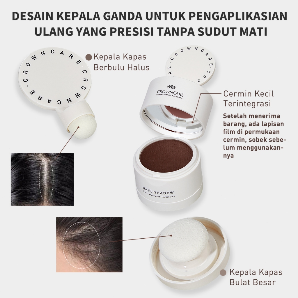 Crowncare Hair Shadow Powder – Bedak Penutup Garis Rambut Yang Tipis, Bedak Penebal Rambut Instan, Tahan Air & Keringat,