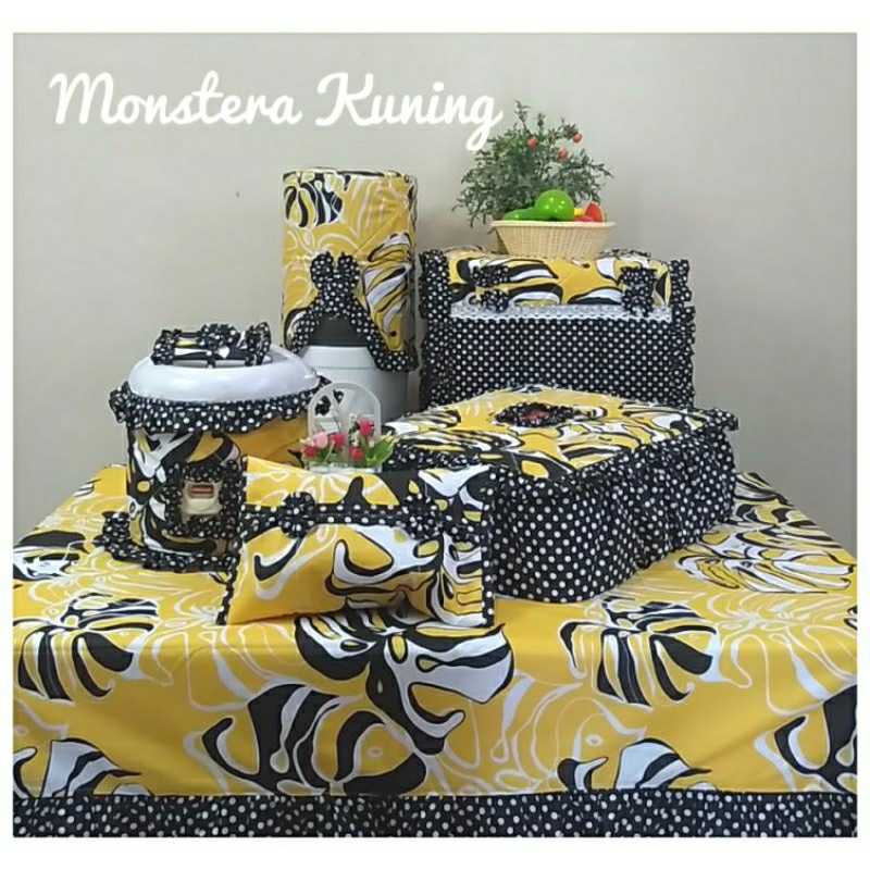 TULIPIA Set Taplak Meja Makan Homeset Kitchen ser Katun Motif DAUN