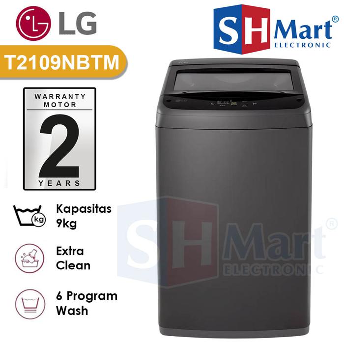 MESIN CUCI LG TOP LOADING 9 KG T2109NBTM TINTED GLASS DOOR GARANSI RESMI
