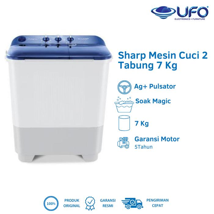 Mesin Cuci Sharp EST75NTPK/BL 2 Tabung 7KgSharp Twin Tub 7kg EST75NTPK/BL Silvermagic Pulsator, Soak