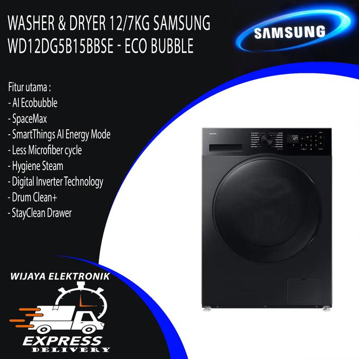 Samsung WD12DG5B15BBSE - Washer & Dryer 12kg Eco Bubble Garansi Resmi / Mesin cuci front loading