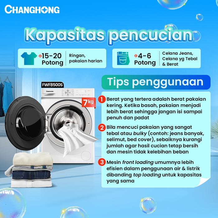 Changhong Mesin Cuci Smart Inverter Front Loading Kapasitas 7 kg Model FWF8500S