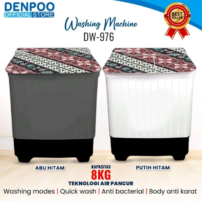 Denpoo Mesin Cuci DW 976 8KG Hemat listrik Tutup Tempre Glass