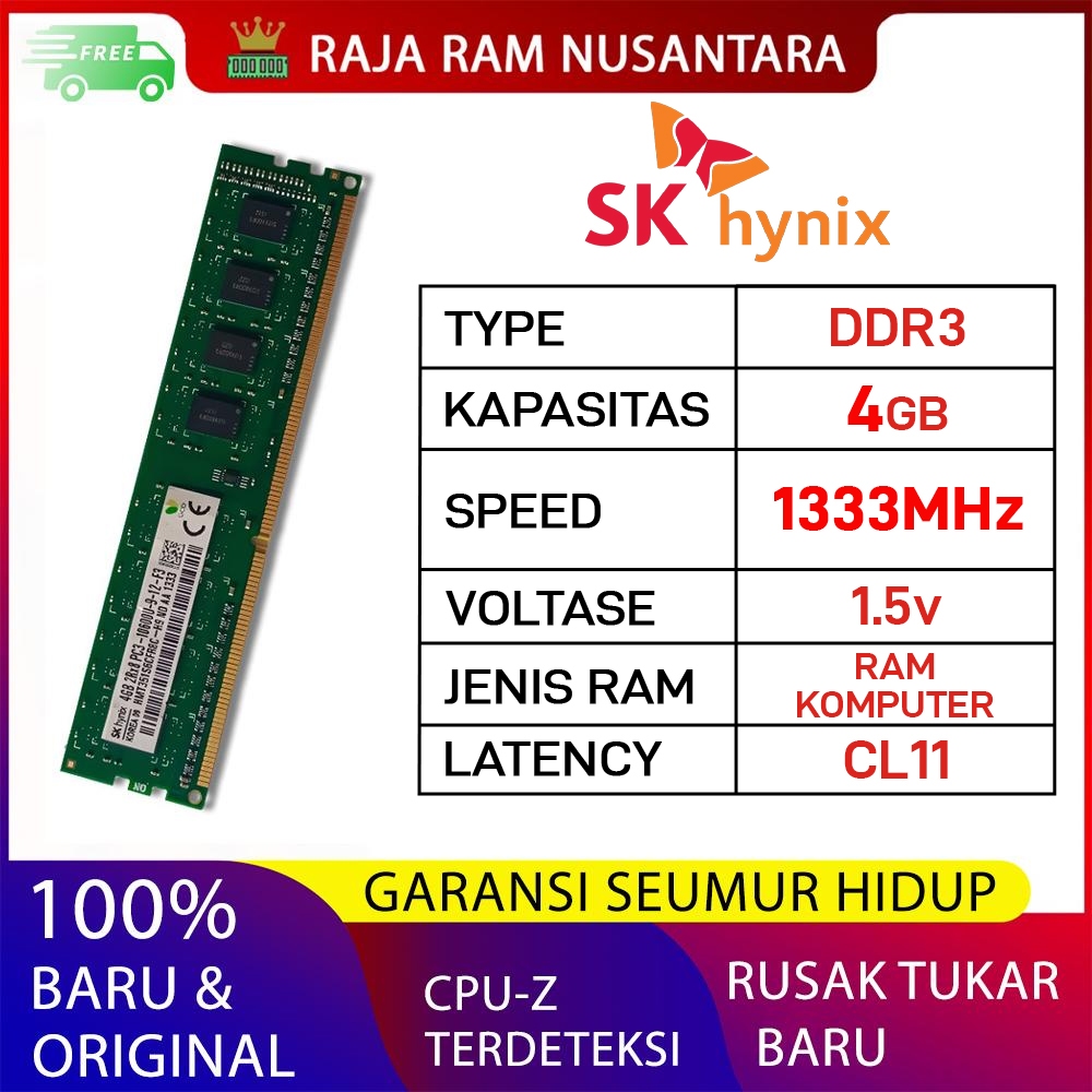 Ram Pc Hynix Ddr3 4Gb 1333Mhz Pc 10600 1.5V Ori Ram Komputer Ddr3 4Gb Longdimm