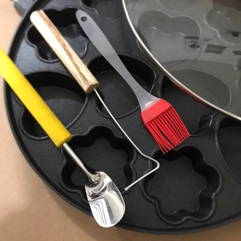 Cetakan Kue Cubit Pukis 12 Lubang Happy Call Bahan Teflon Anti Lengket Tutup Kaca Cake Pan
