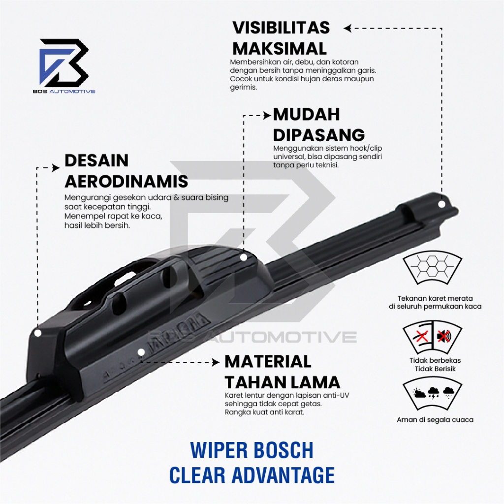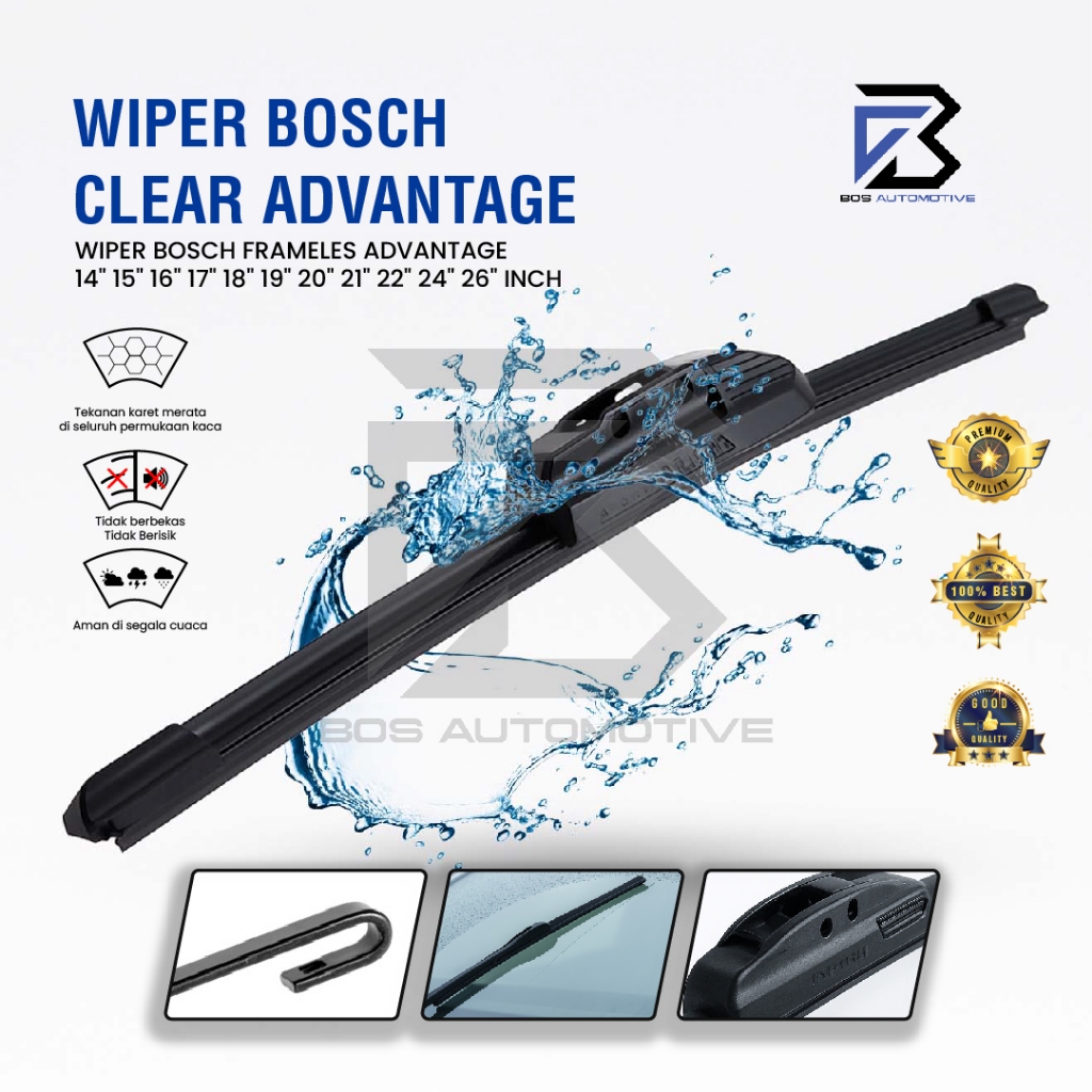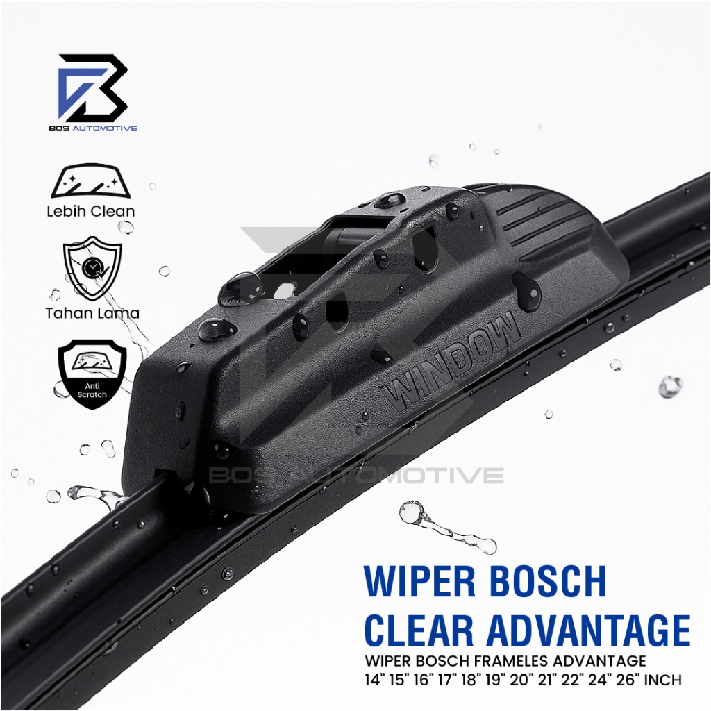 Wiper Mobil Blade BOSCH Frameless Clear Advantage Aerofit Pisang Full Karet Kipas Kaca Depan Mobil Frame Hook