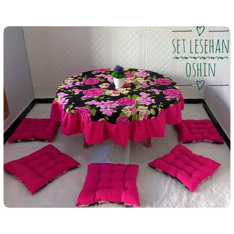 Set Lesehan Oshine | Taplak Meja Bulat | Bantal Set Meja Osin