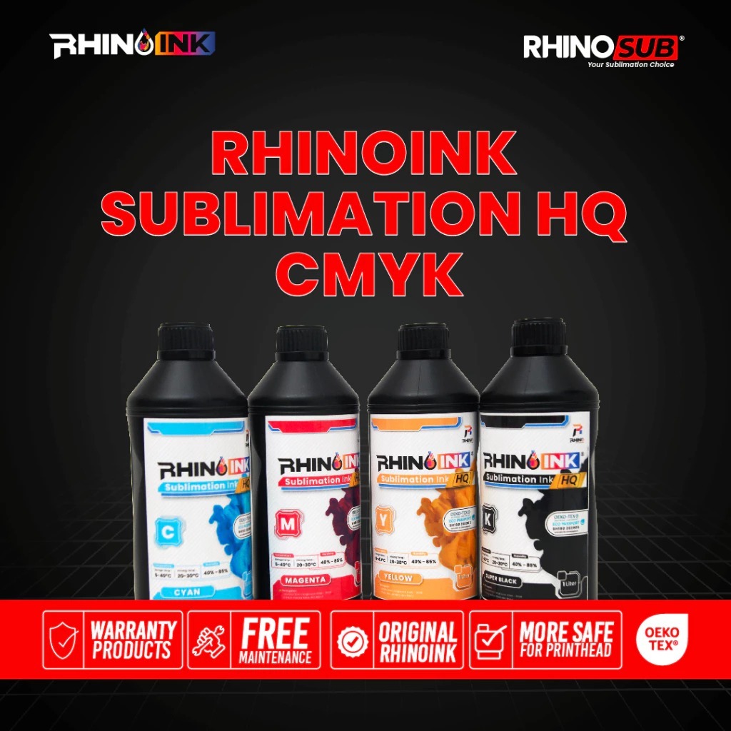 Kemasan Baru TINTA SUBLIM RHINO NEW (CMYK) & CLEANER SUBLIM 1LITER