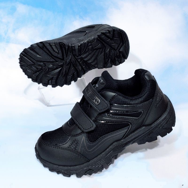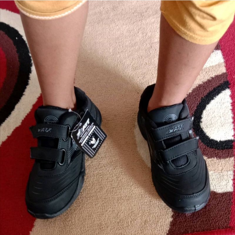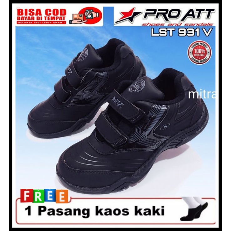 Lst Sepatu Sekolah Anak Kecil Tanggung Cowok Cewek Hitam Tempel Perekat Murah Free Kaos Kaki Size 30 Sd