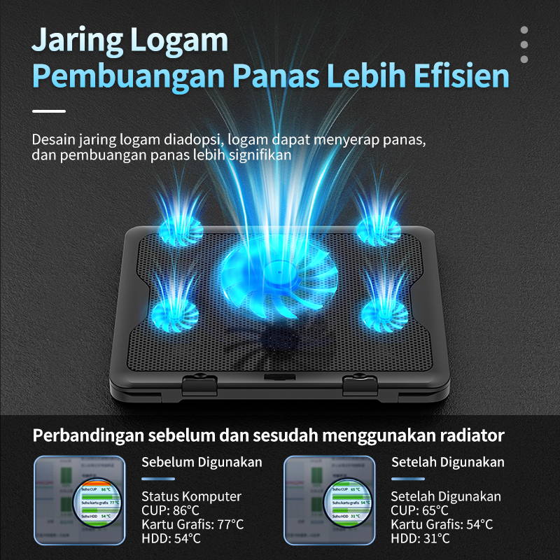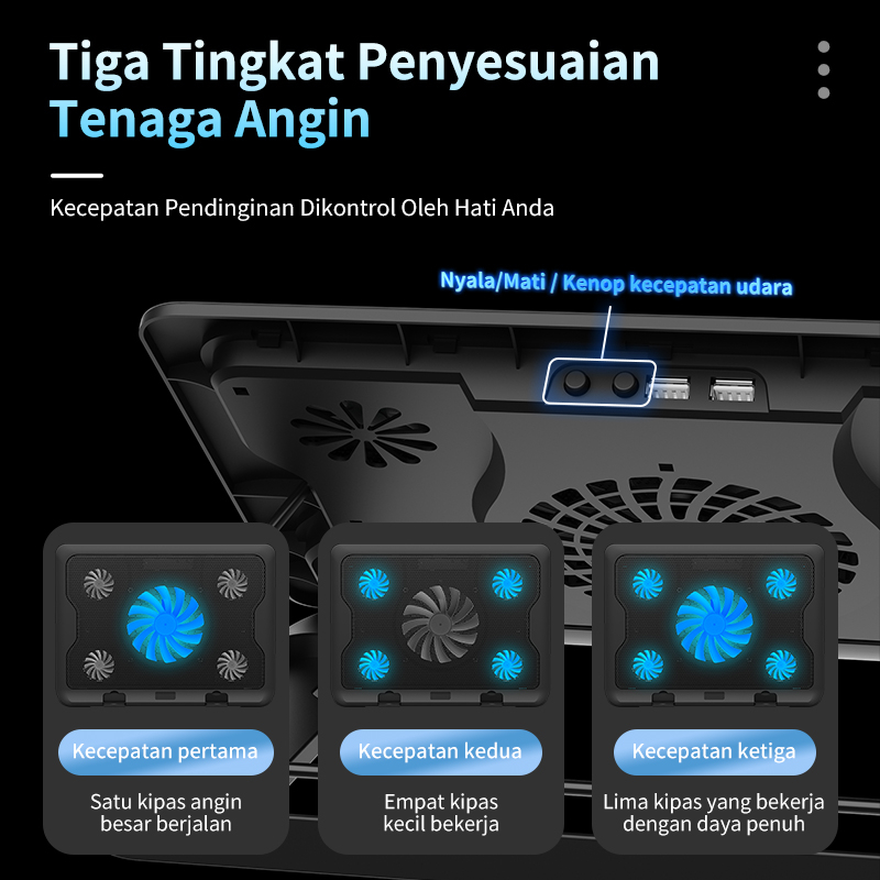 Olyps Cooling Pad Laptop 5 Turbo Fans Kipas Laptop Cooling Pad Pendingin Laptop 6 Level Stand