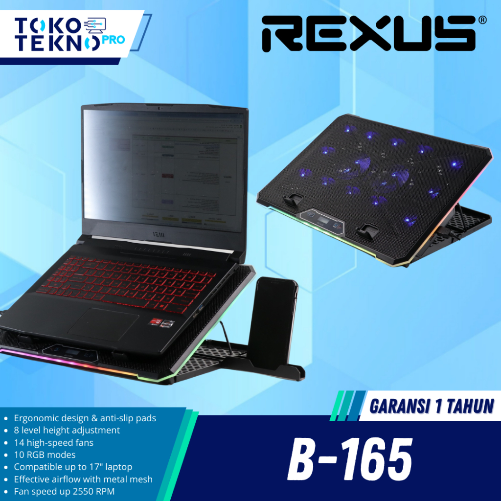 Rexus B165 / B-165 Breeze Cooling Pad With Rgb Color And Phone Holder