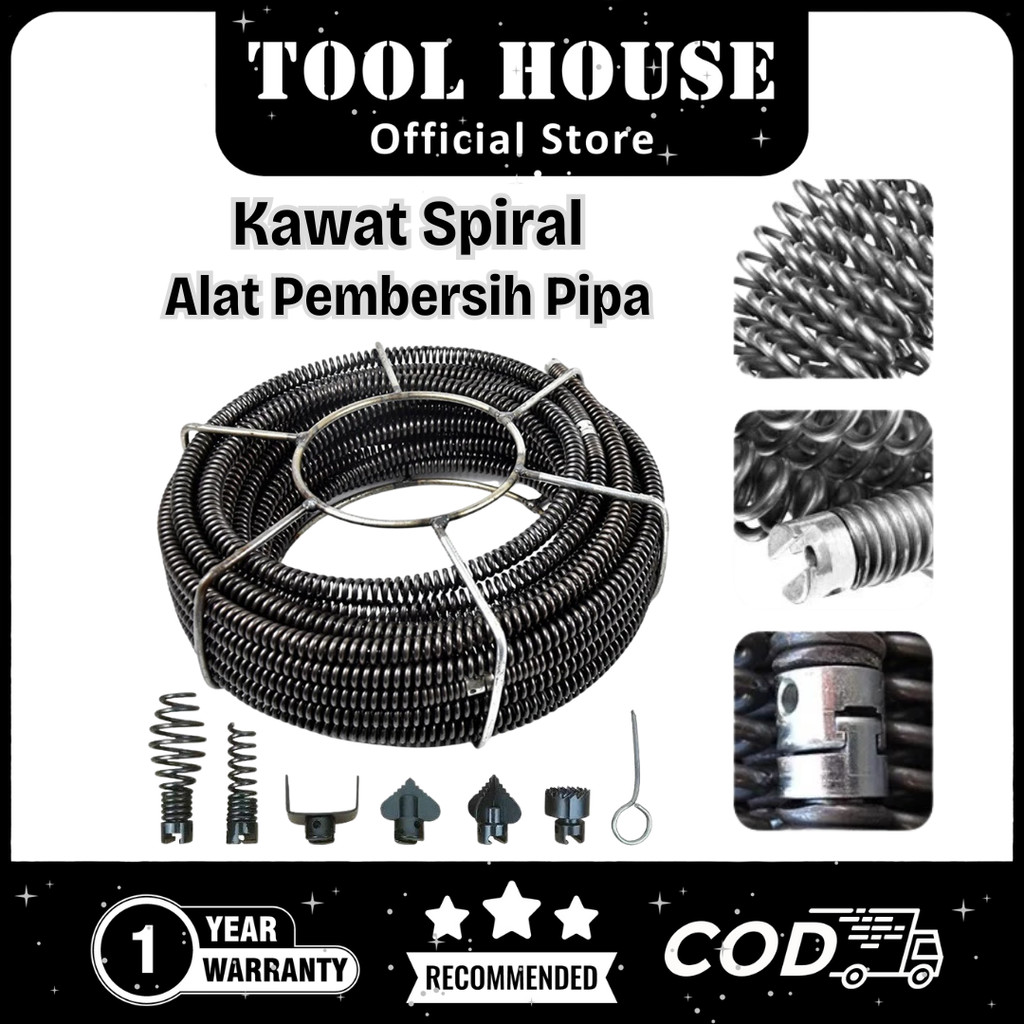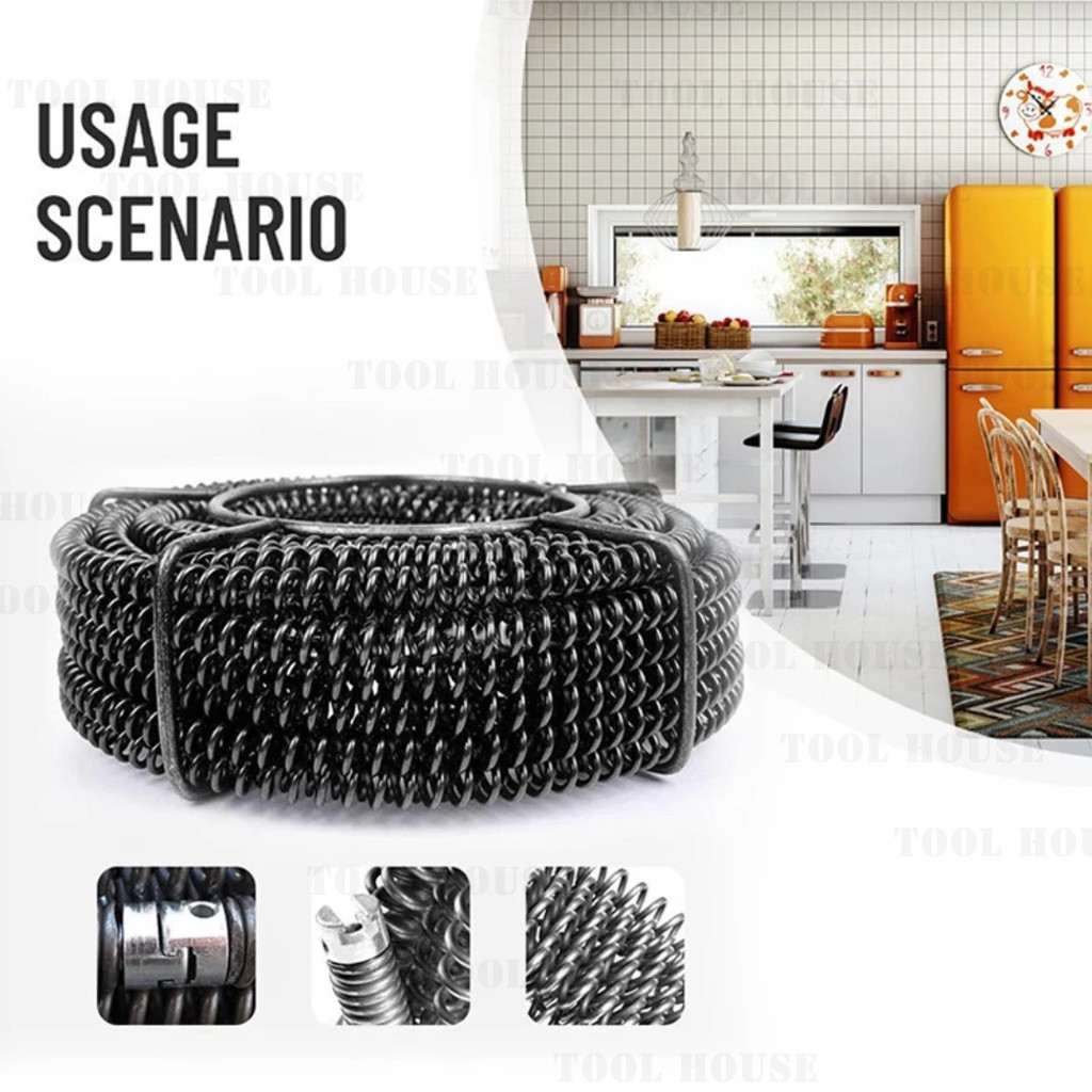 Tool House [Garansi Toko 1 Tahun] Kawat Spiral Alat Pembersih Pipa Saluran Air Mampet 15 Meter Untuk Pipa Mampet - Alat Pembersih Saluran Pipa Mampet Pipe Cleaner THS