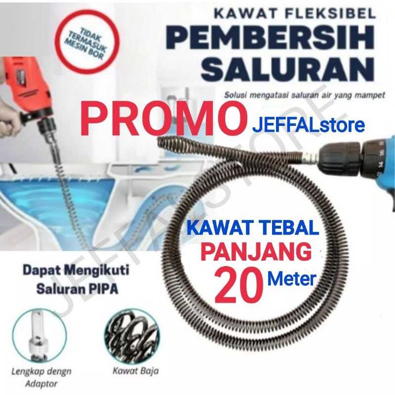Kawat Pembersih Saluran Pipa Mampet Dengan Adaptor Bor Panjang 20 Meter