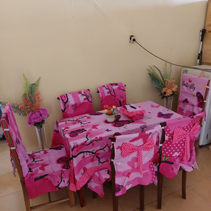 TAPLAK MEJA + COVER SET 6 KURSI LENGKAP pilih motif