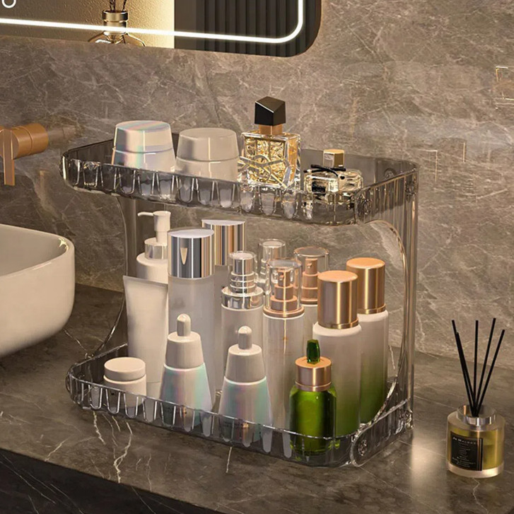 Loooopy Rak Kosmetik Acrylic 2 Tingkat Serbaguna Rak Penyimpanan Multifungsi / Make Up Organizer