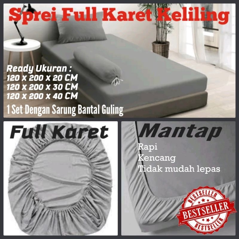 Sprei Karet Keliling 120X200 Cm Ready Untuk Tinggi Kasur 20 Cm, 30 Cm Dan 40 Cm Bahan Polos Katun Micro