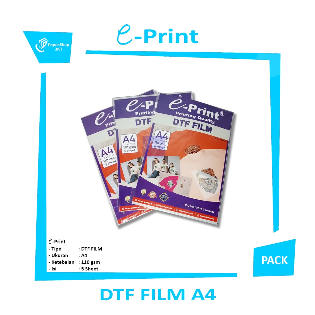 EPRINT - Kertas Print DTF Sablon Digital Tranfers A4 5 Lembar - Pack