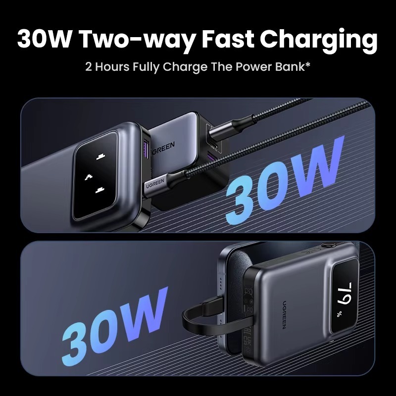 UGREEN UNO Robot Power Bank 10.000mAh PD Fast Charging 30W Built-In Type-C Cable