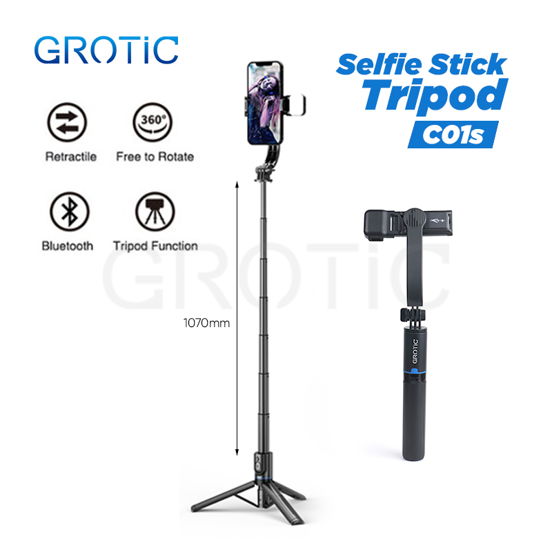 Grotic Tripod Handphone Remote Bluetooth Dengan Lampu Klip Telepon Dapat Dilepas Tongsis Hp C01