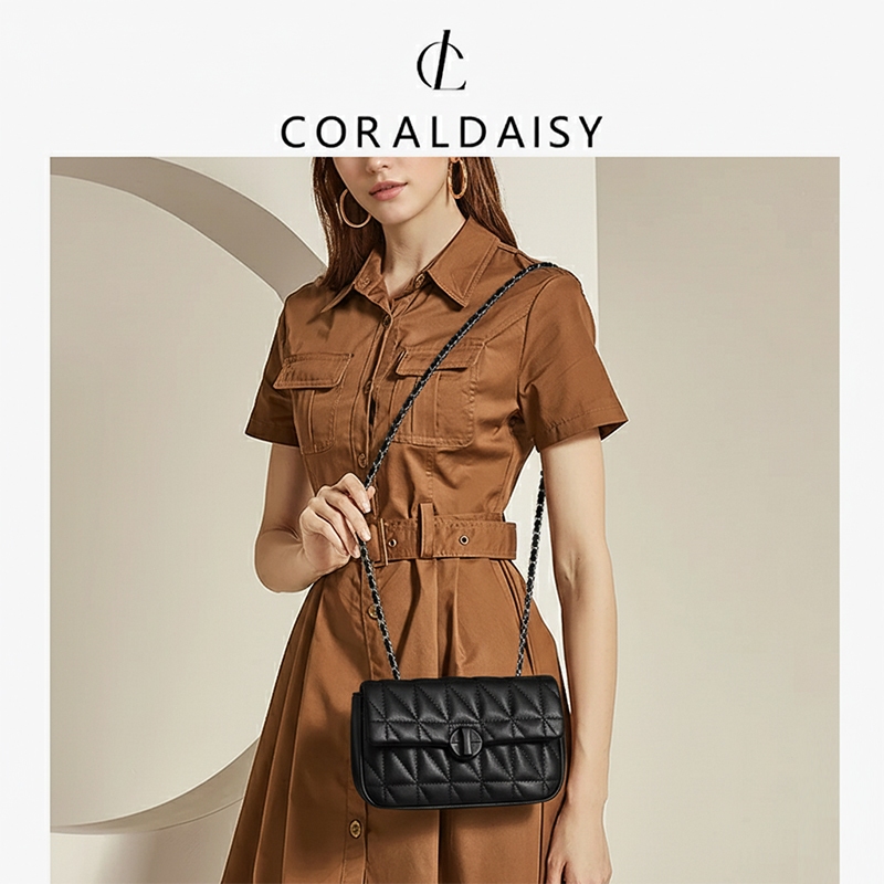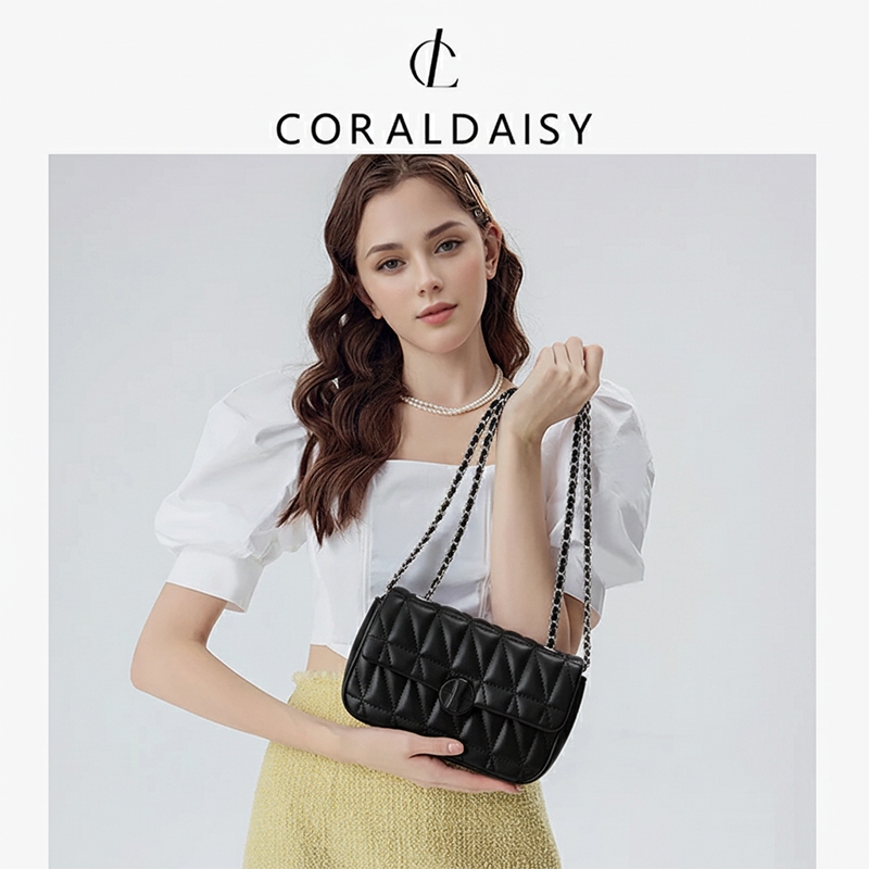CL Elegan Tas Bahu Rantai Wanita Warna Solid Pola Berlian Tas Selempang bostanten Cantik Sling Bag