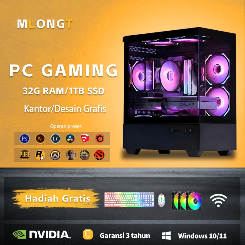 full set PC gaming Intel, cocok untuk penggunaan kantor rumah, desain grafis, dan bermain game berskala besar; Gratis ke