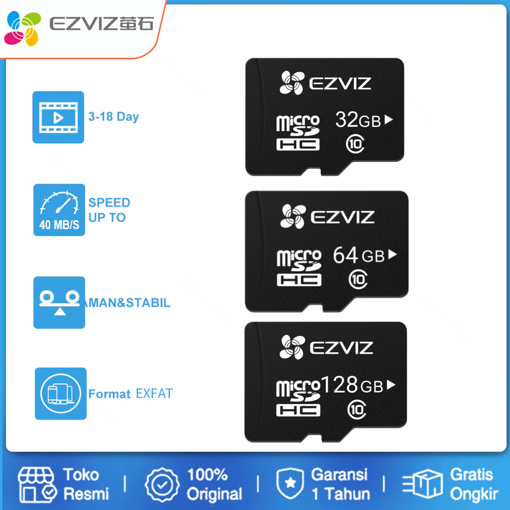 EZVIZ Micro SD 32GB 64GB 128GB Memory Card Micro SD Untuk Kamera CCTV Original