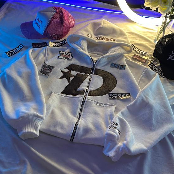 Boxy zip hoodie D leather Bordir DRN.CO jacket resleting ootd streetwear Murah Gratis Ongkir
