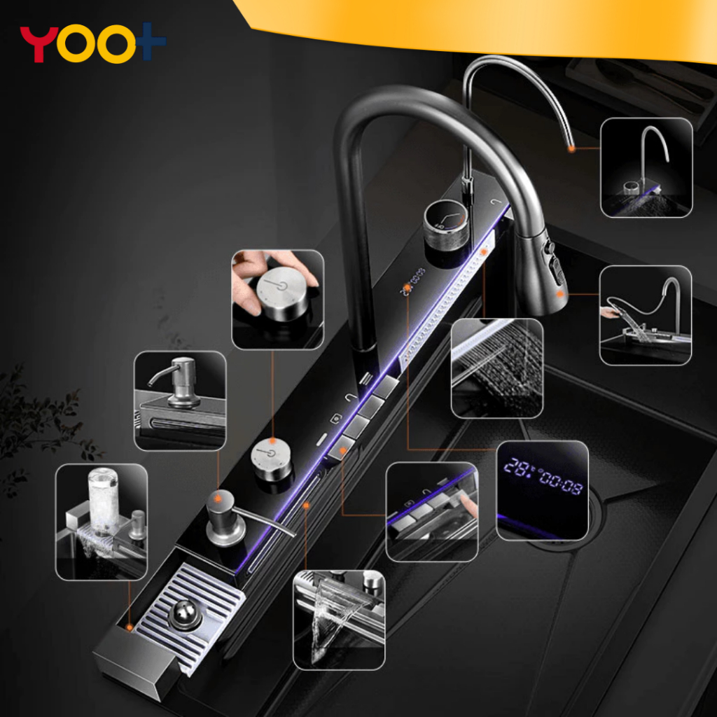 HT Hardware - Kitchen Sink Modern Super Black SUS 304 Stainless Steel 3.0MM Bak Cuci Piring Wastafel Dapur Lengkap Adjus