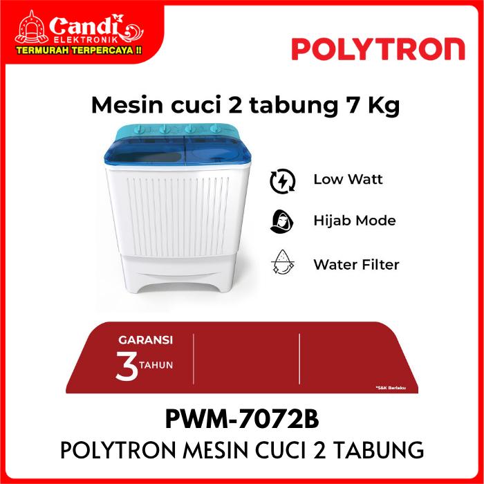 POLYTRON Mesin Cuci 2 Tabung 7 Kg Primadona Giant Hijab Mode Low Watt PWM-7072B