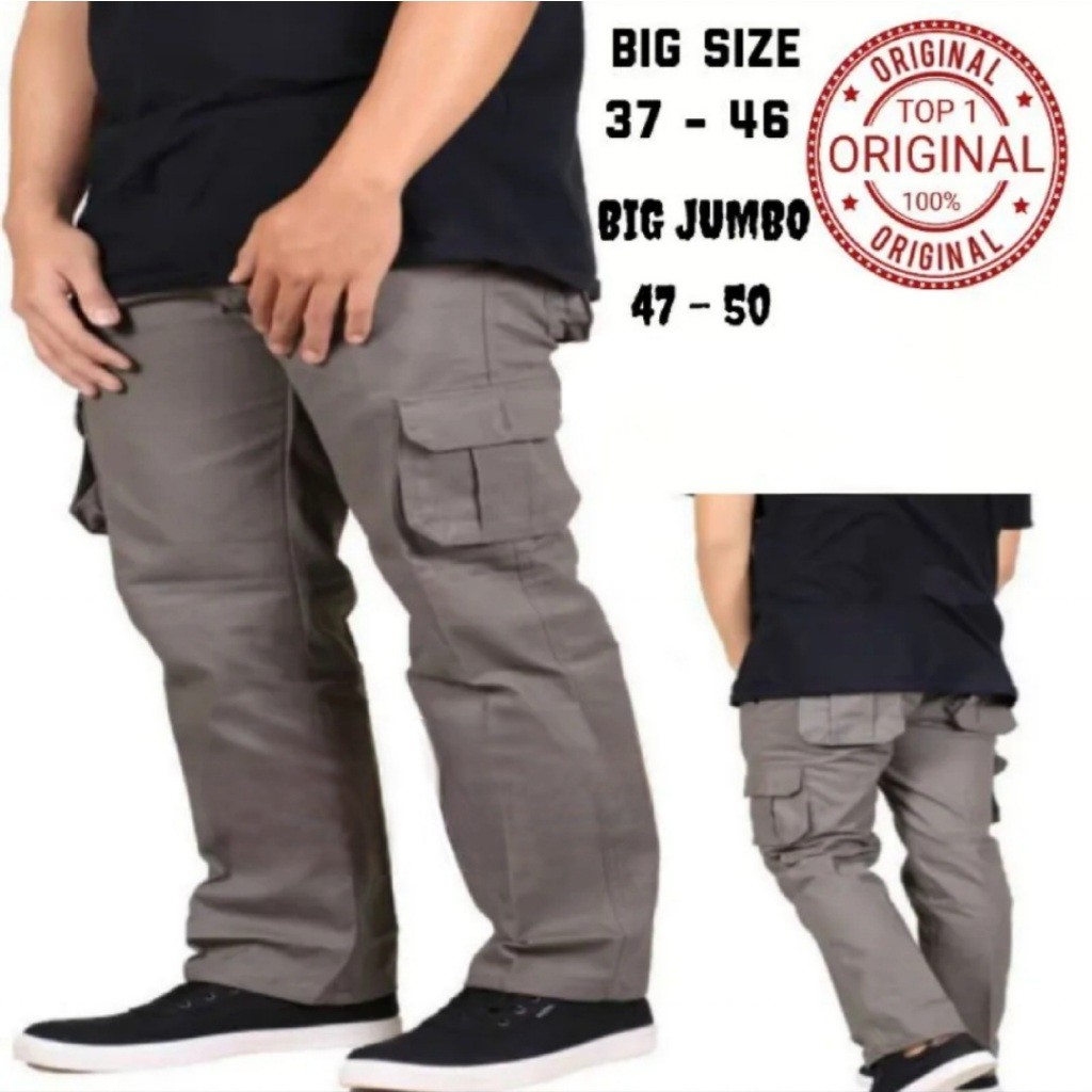 Celana Cargo Panjang Pria Big Size Jumbo Kargo PDL Cowok Gemuk Gendut Besar Bahan Twill